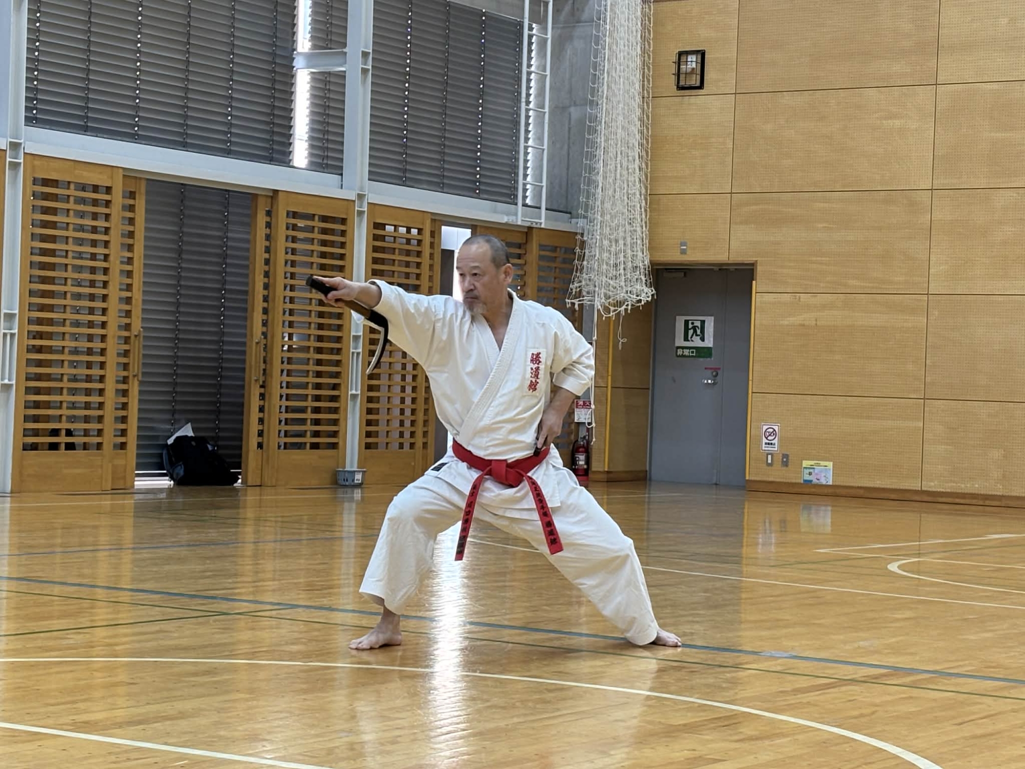 初心者大歓迎!です。勝道館では、子供から大人まで老若男女(小学生から)が楽しく健康になることと、遠山寛賢大師範の沖縄正統空手道の6種12の型を正しく伝承することを目的としています。